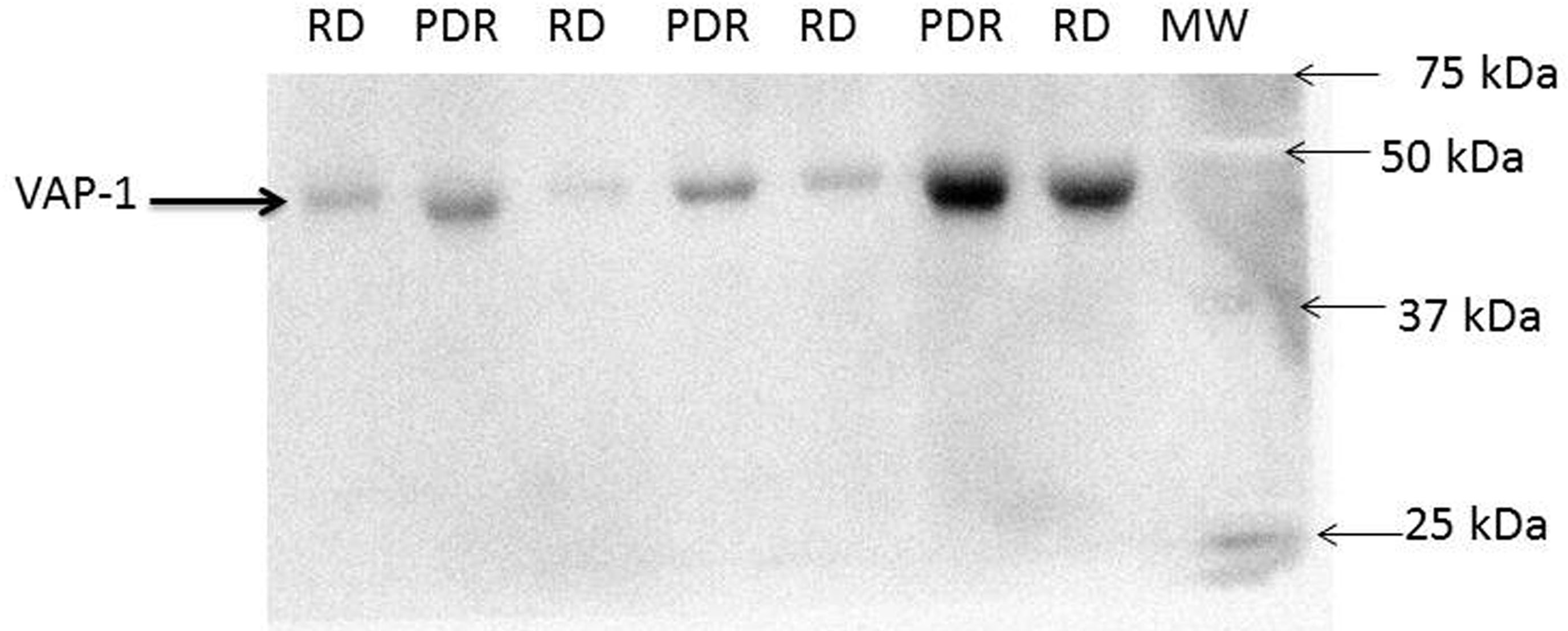 patients with PDR and control patients without diabetes (RD) was determined by western blot analysis. A representative set