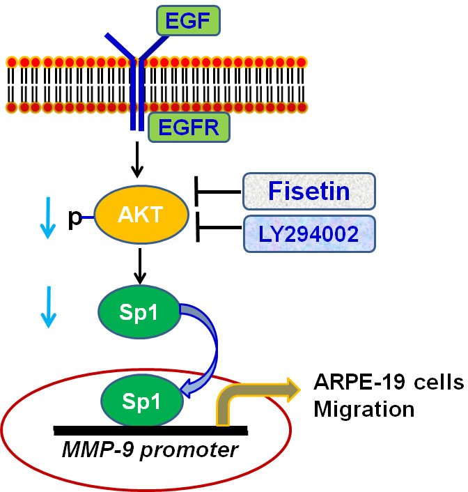 Figure 6. A model describing the molecular mechanisms by which fisetin suppresses EGF-induced ARPE-19 cell migration. Fisetin could
