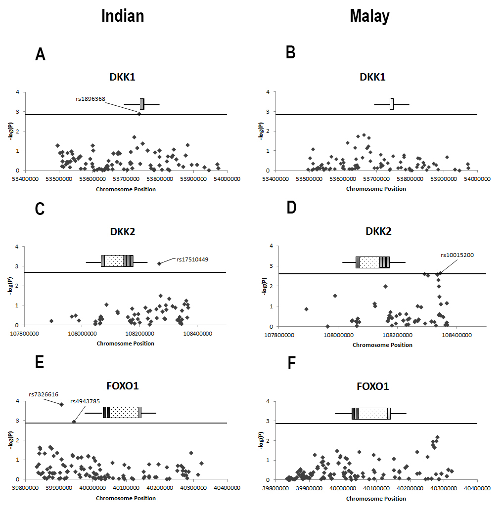 FOXO1 associations with CCT in Singapore Indian and Malaysian populations. In the Singapore Indian population, variants adjacent