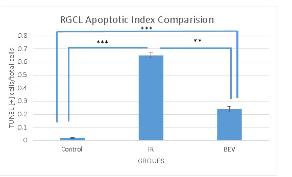 Figure 3. The apoptotic indices of the three groups. As expected, the lowest apoptosis is in the control group since they did not receive