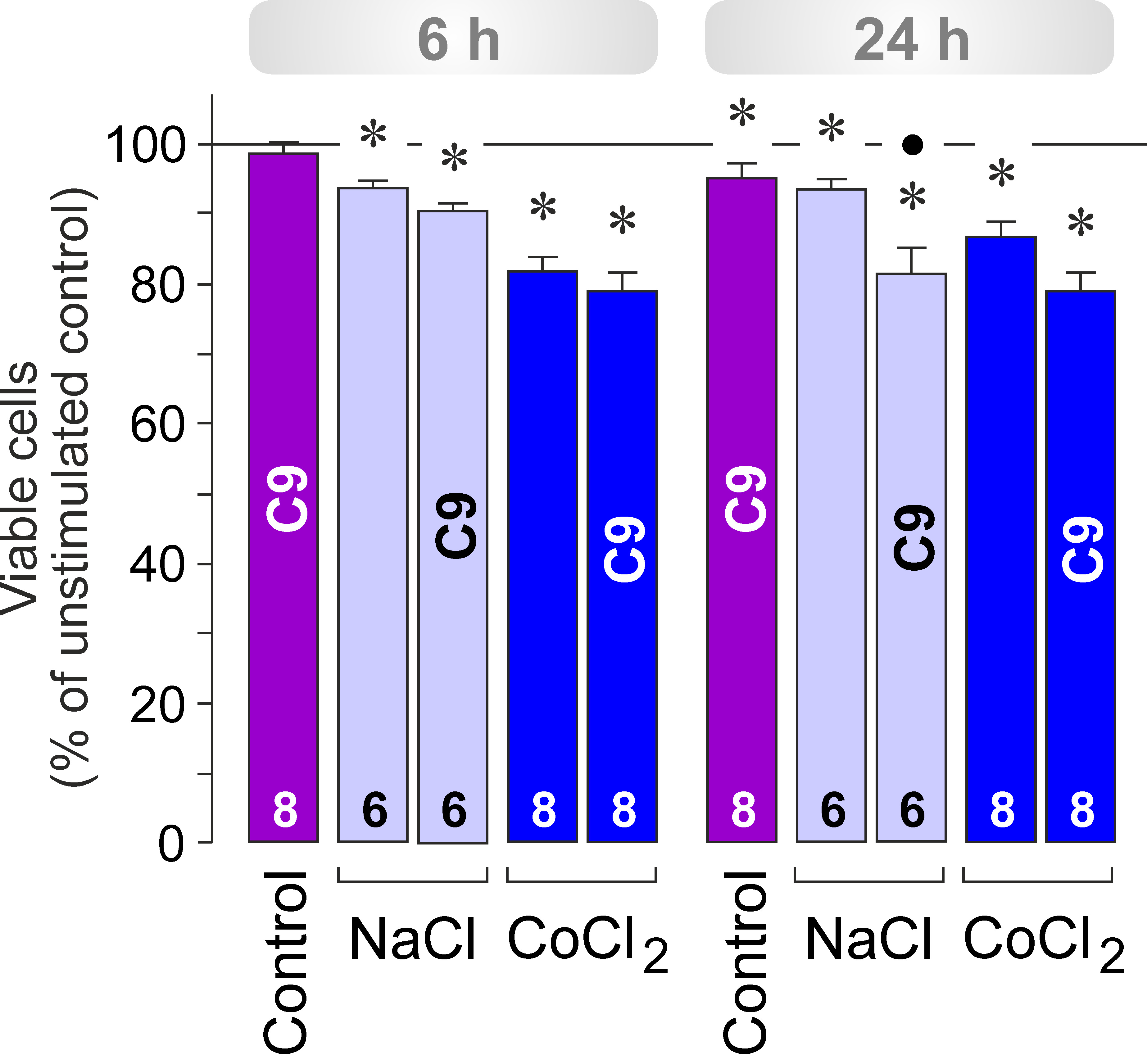 medium (+ 100 mM NaCl) or an isosmotic medium containing CoCl2 (150 µM) for 6 h and 24 h in the absence and presence of C9 protein (10 nM), respectively. The numbers of independent experiments