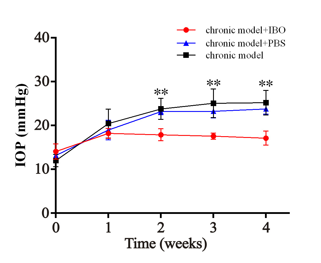 Figure 2. Effect of IBO injection into the ARC on IOP in chronic high IOP rat model. The intraocular pressure (IOP) of the ipsilateral