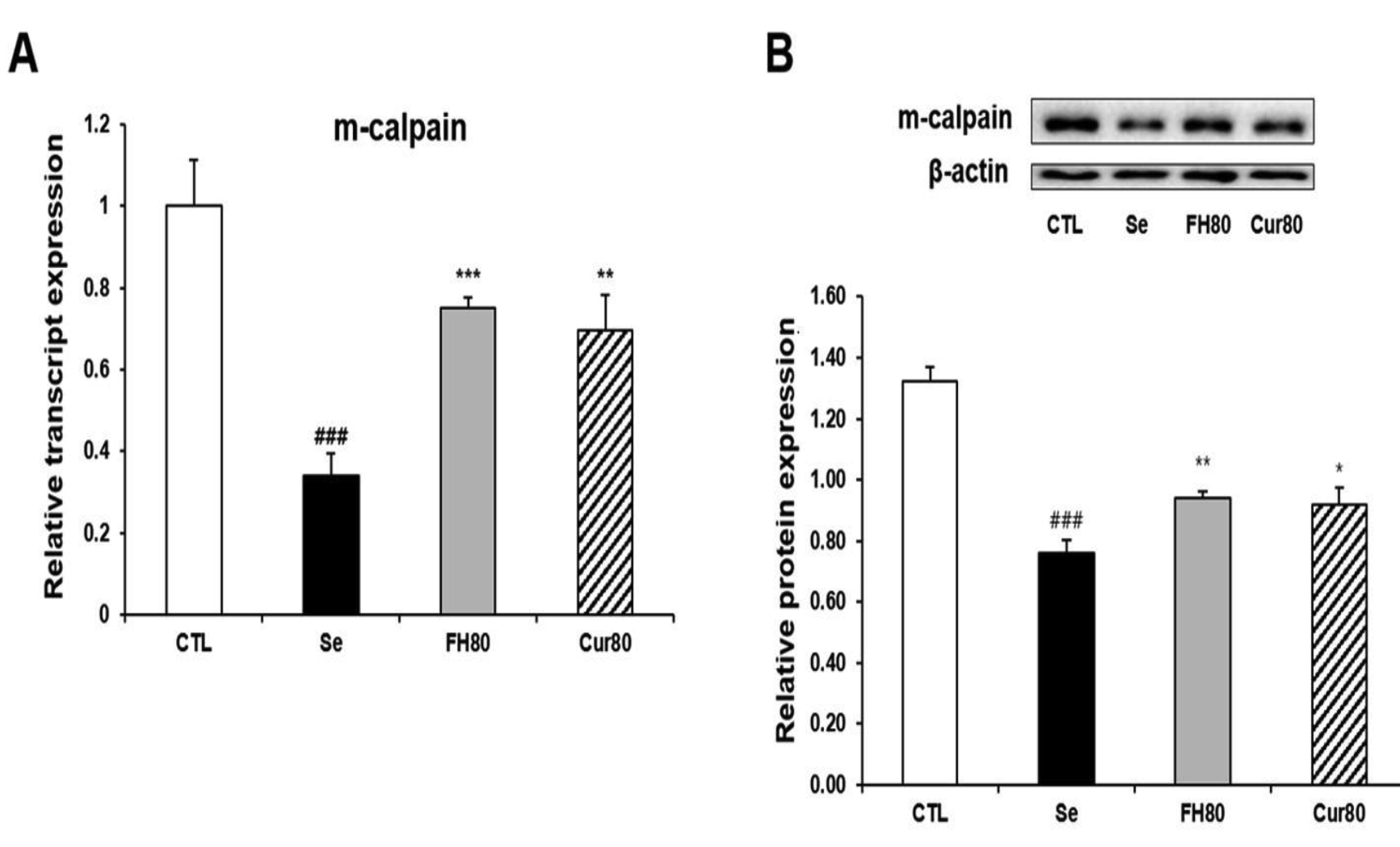 Se: selenite-treated, FH80: selenite/FH-treated (80 mg/kg), Cur80: selenite/curcumin-treated (80 mg/kg).