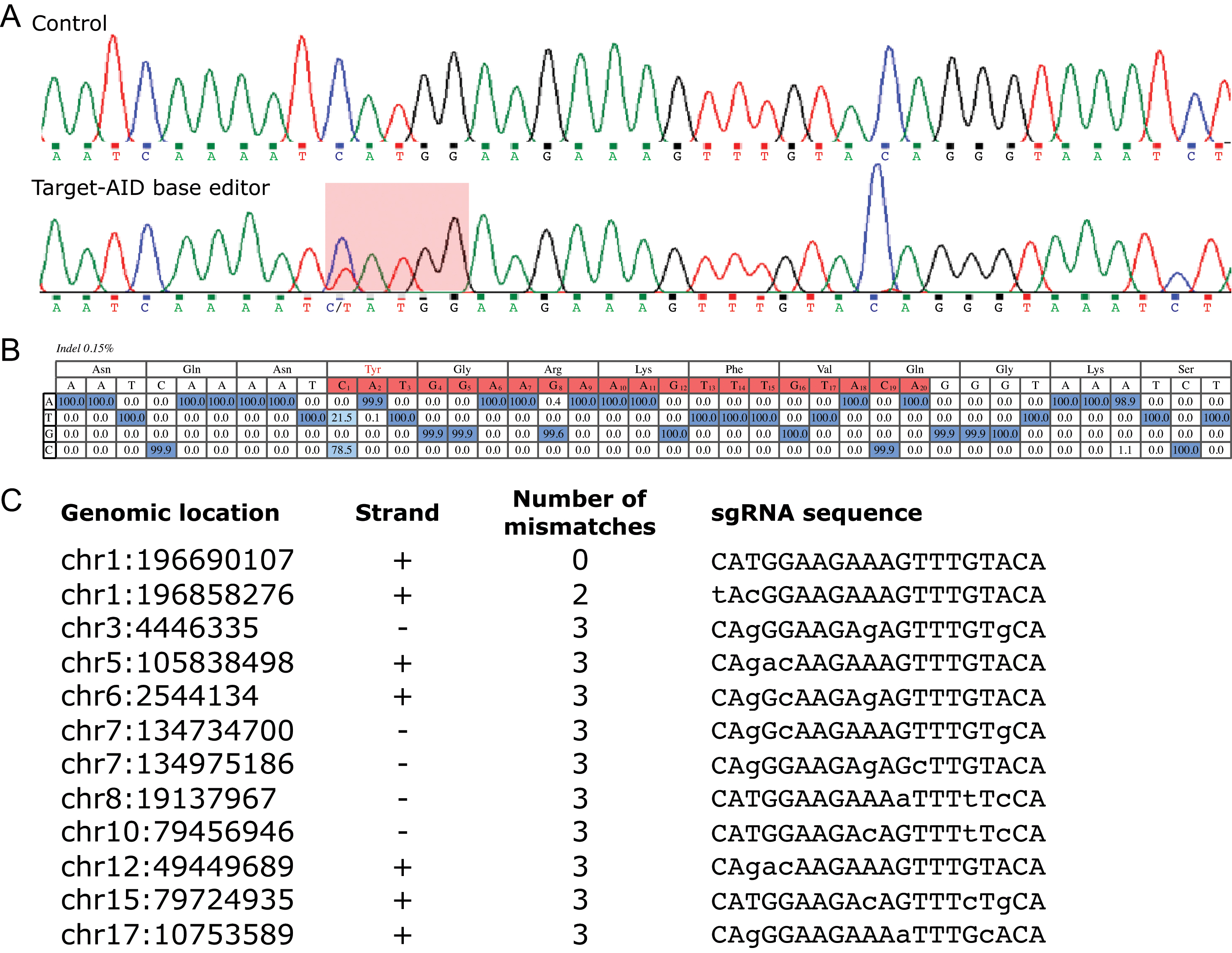 Figure 2. Editing efficiency of the Target-AID base editor at Y402H