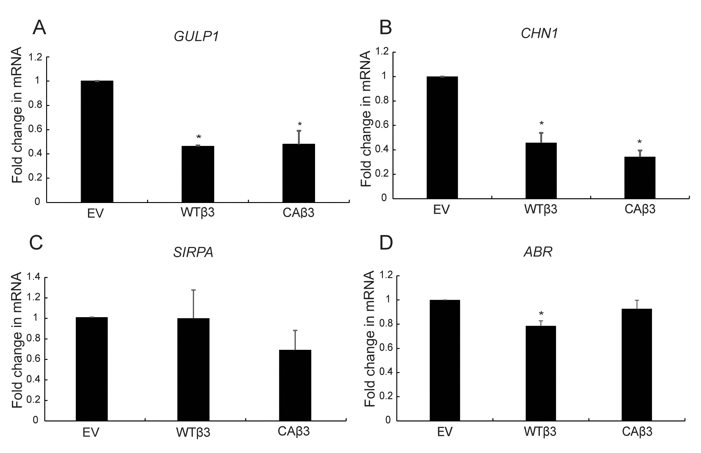 ABR mRNA levels were done on stable TM-1 cell lines overexpressing the WT β3 integrin subunit or a CA β3 integrin subunit [