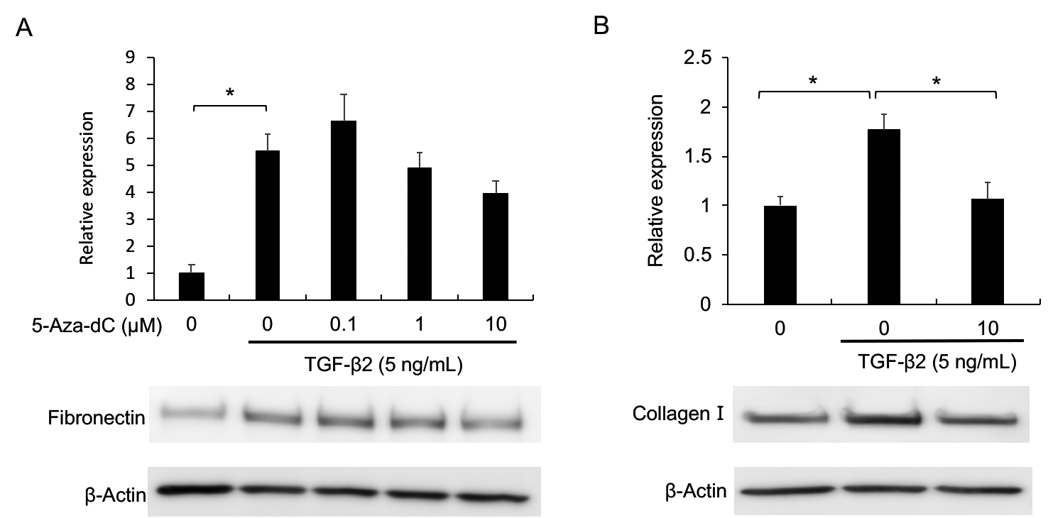 Figure 2. The effect of 5-Aza-dC on the extracellular matrix. Primary human conjunctival fibroblasts were pretreated with 5-Aza-dC once