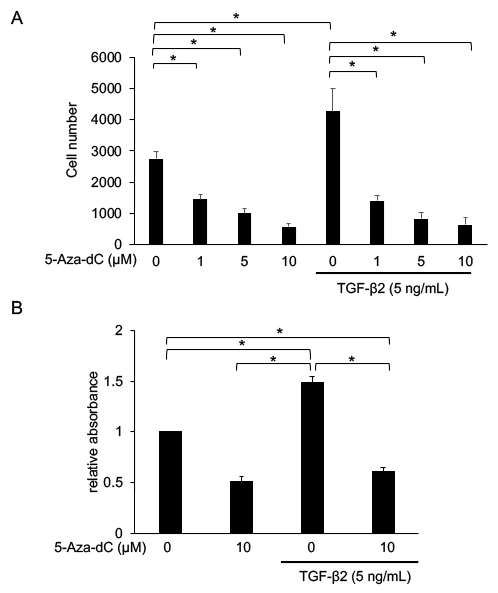Figure 4. The effect of 5-Aza-dC on cell proliferation. Primary human conjunctival fibroblasts were pretreated with 5-Aza-dC once daily