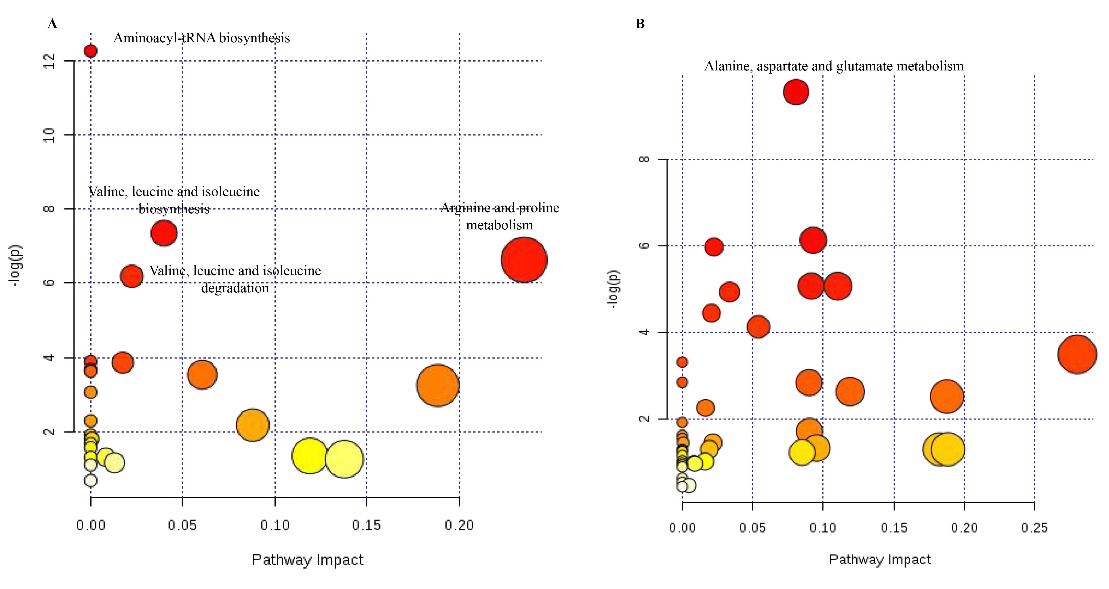 Figure 3. Metabolic pathway analysis for patients with PCG. A: Metabolic pathway analysis of 38 significantly different metabolites among patients with PCG, CCs, and ARCs using the MetaboAnalyst