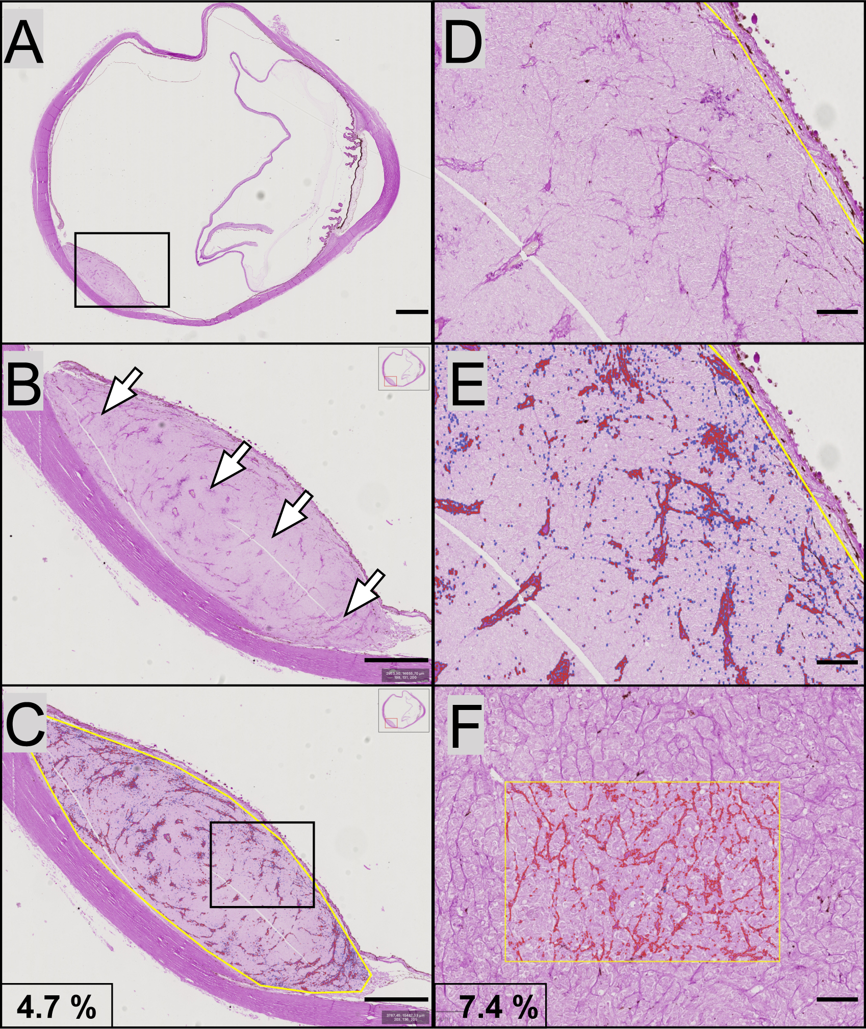 identified PAS positive patterns (marked red). As indicated, the PAS density in this full tumor cross-section was 4.7% (PAS