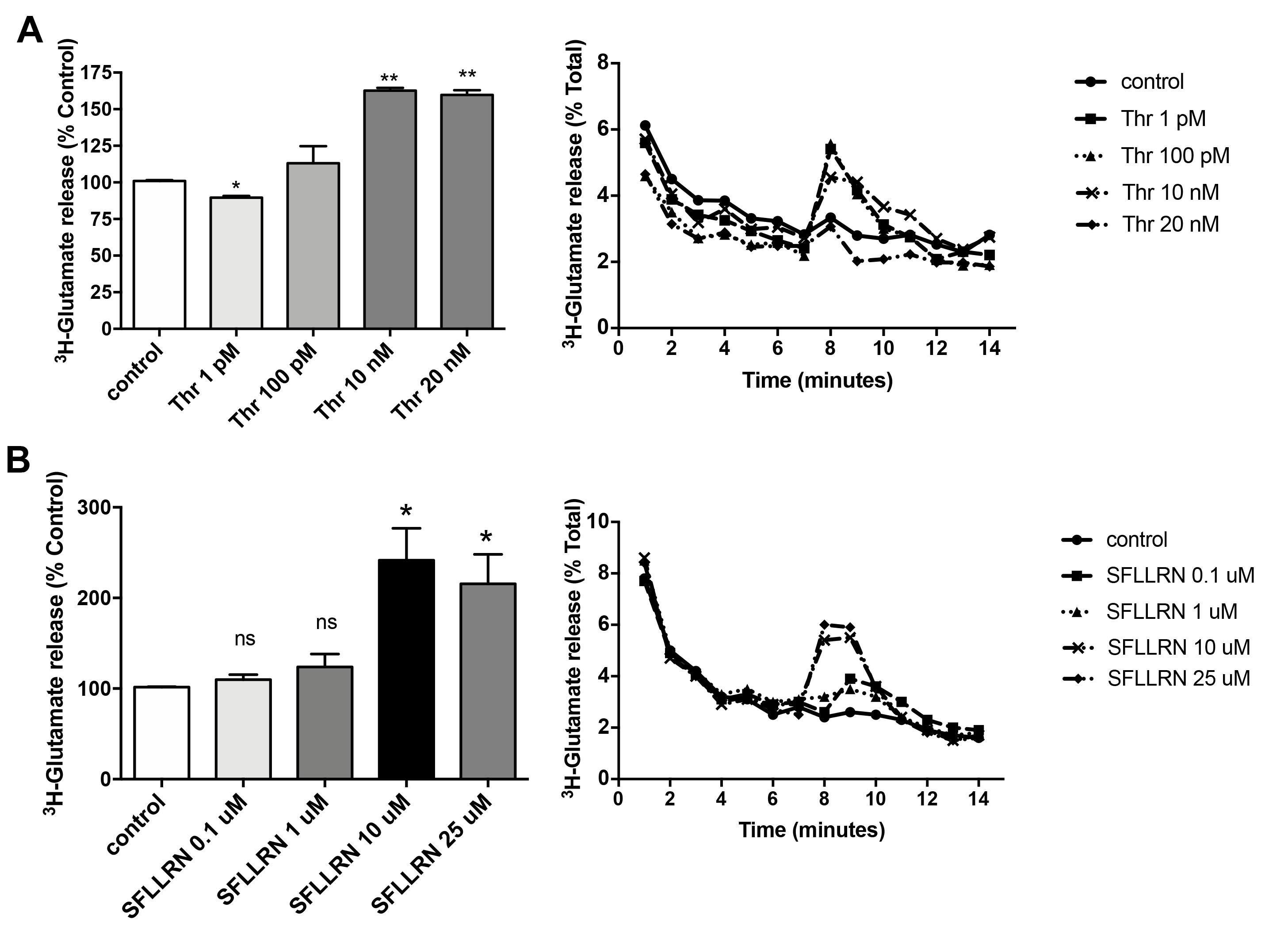 A) or of the specific protease-activated receptor 1 (PAR-1) agonist peptide Ser-Phe-Leu-Leu-Arg-Asn-amide trifluoroacetate