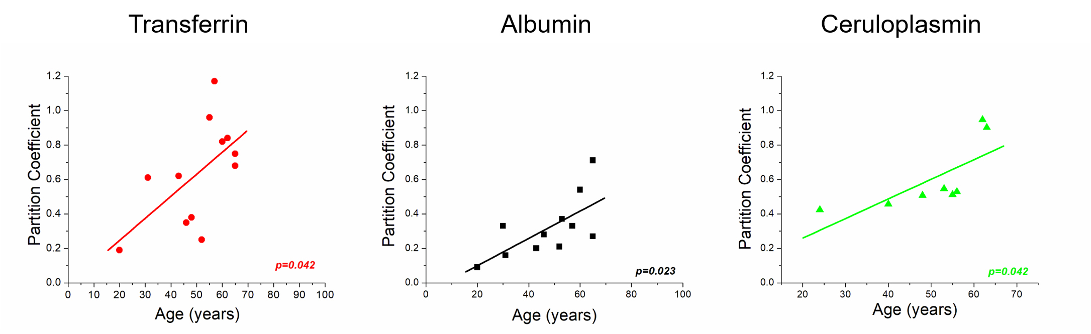 Figure 4. For all three proteins investigated, the partition coefficient statistically significantly increases with age. This suggests