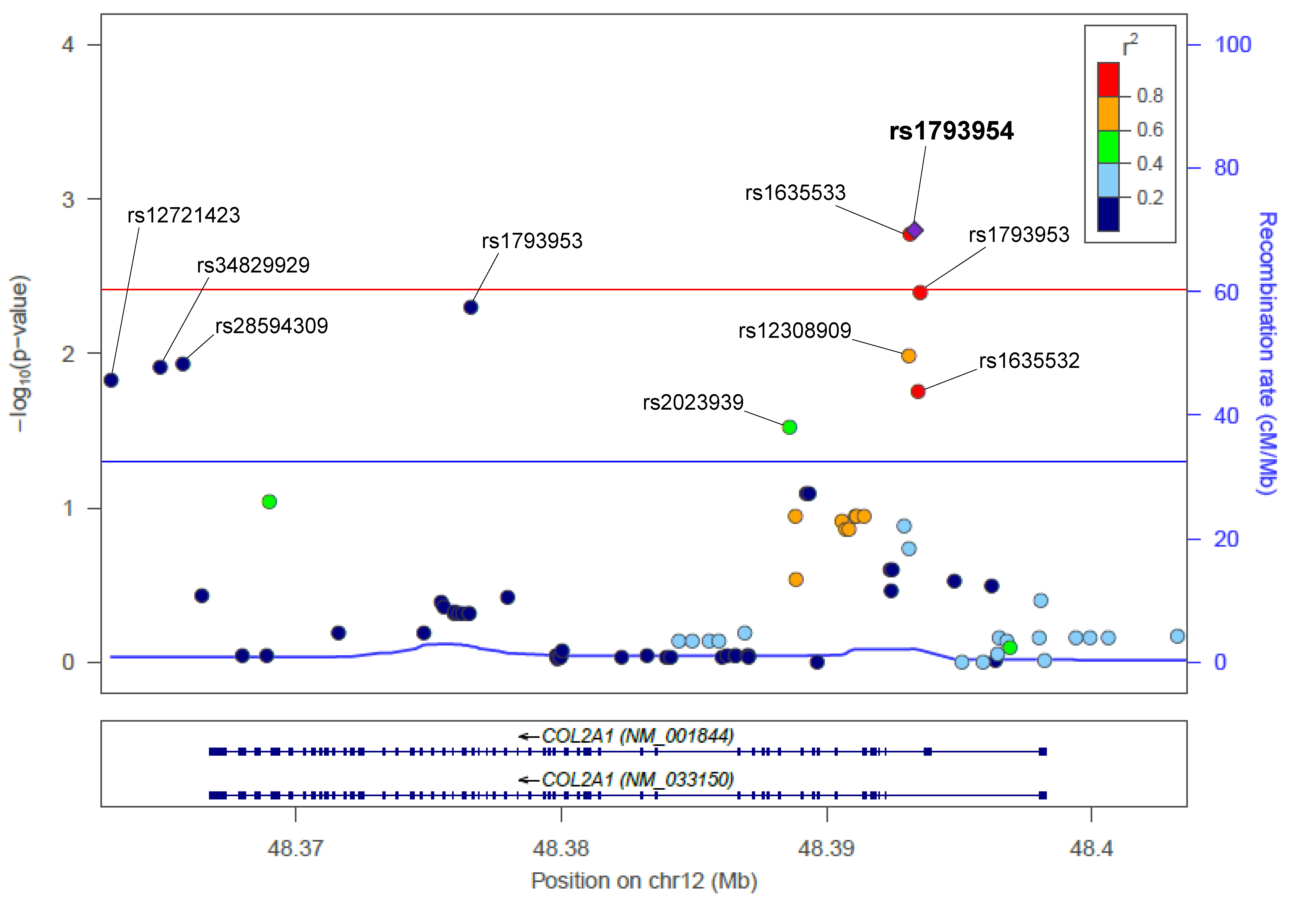 COL2A1 gene region with lattice degeneration of the retina in the Japanese population. The SNP showing the strongest association