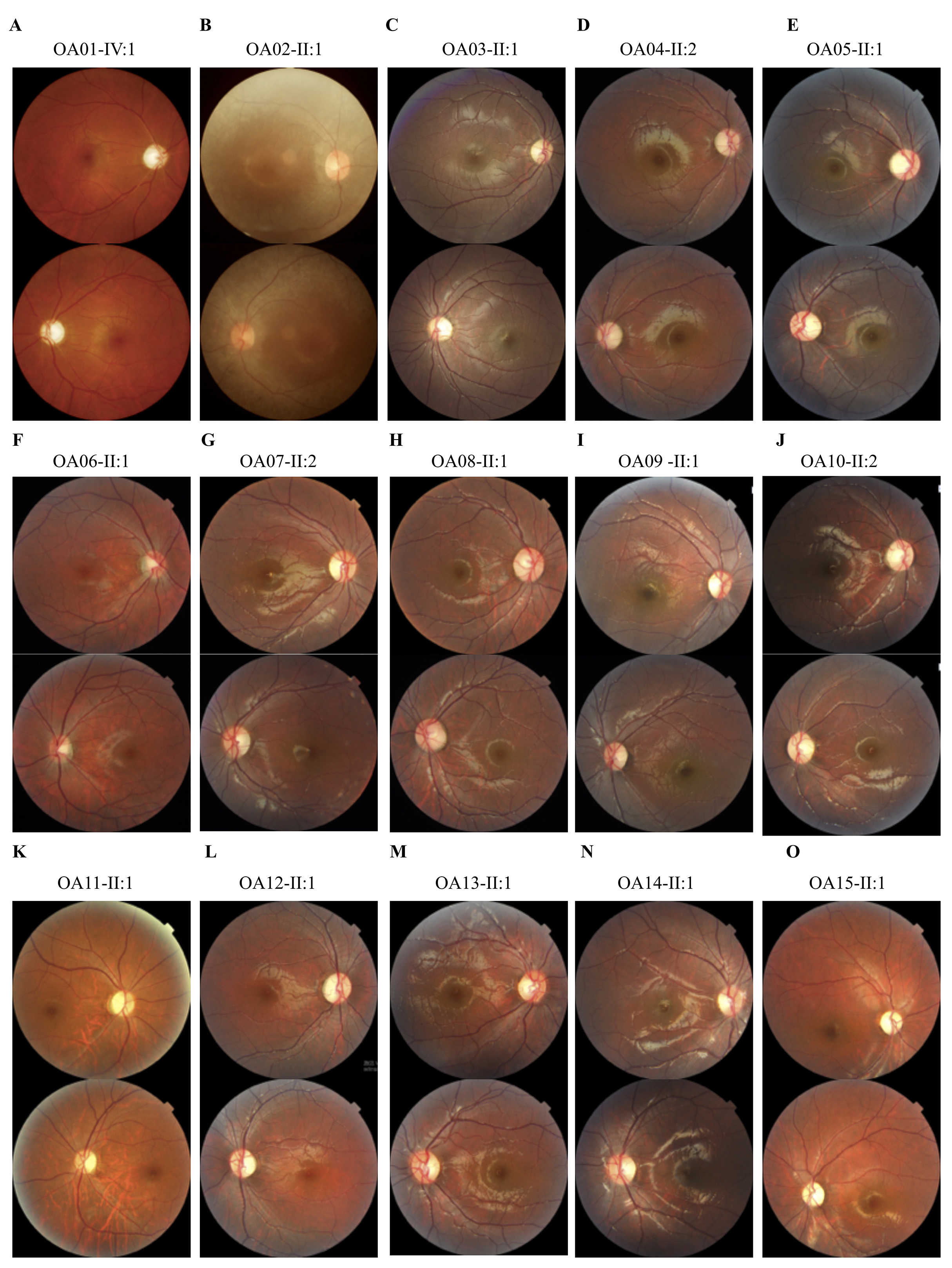 : Fundus photographs of all probands demonstrate bilateral optic nerve head pallor.