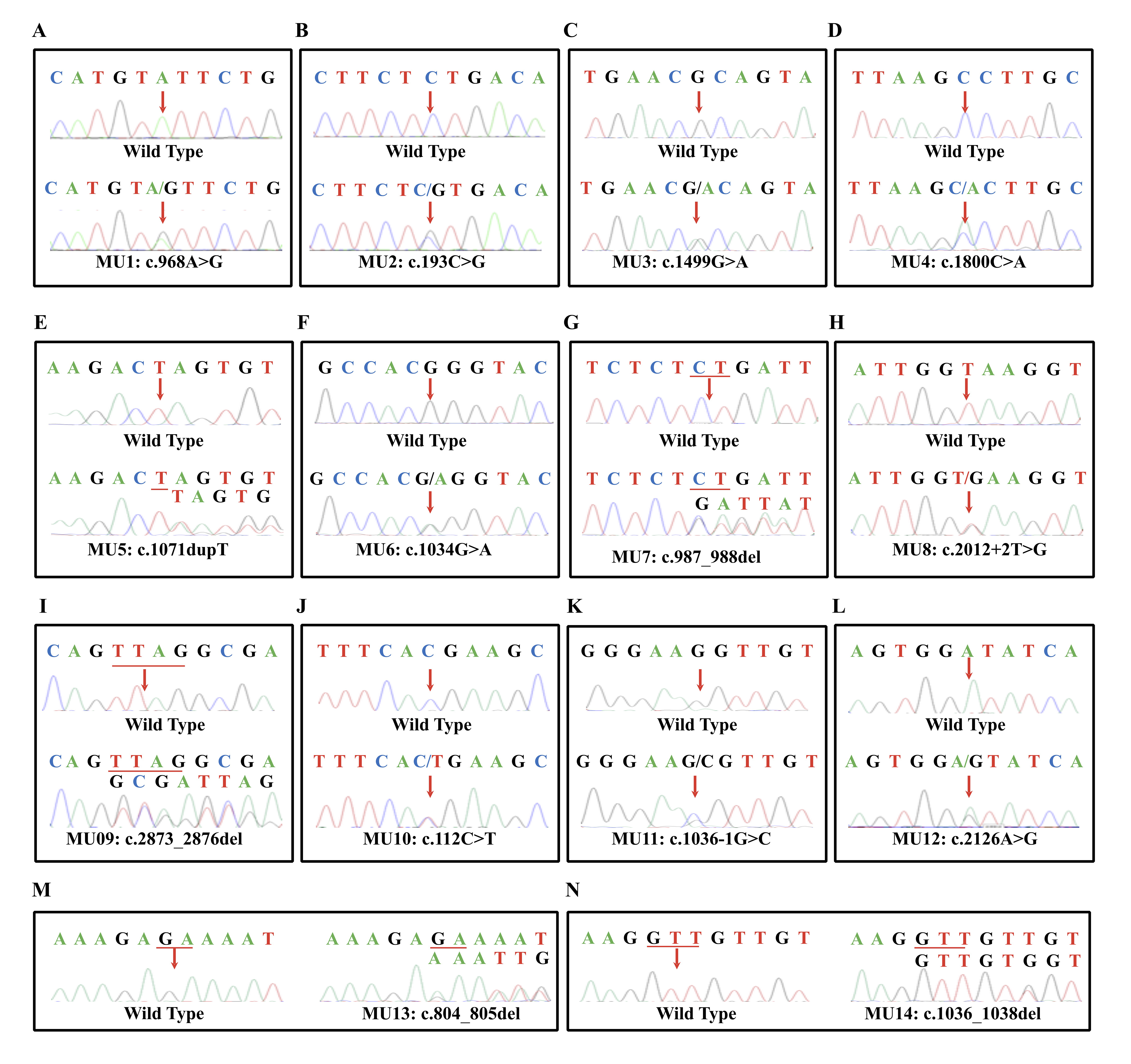 Chromatograms of wild-type (top) and mutant (bottom)