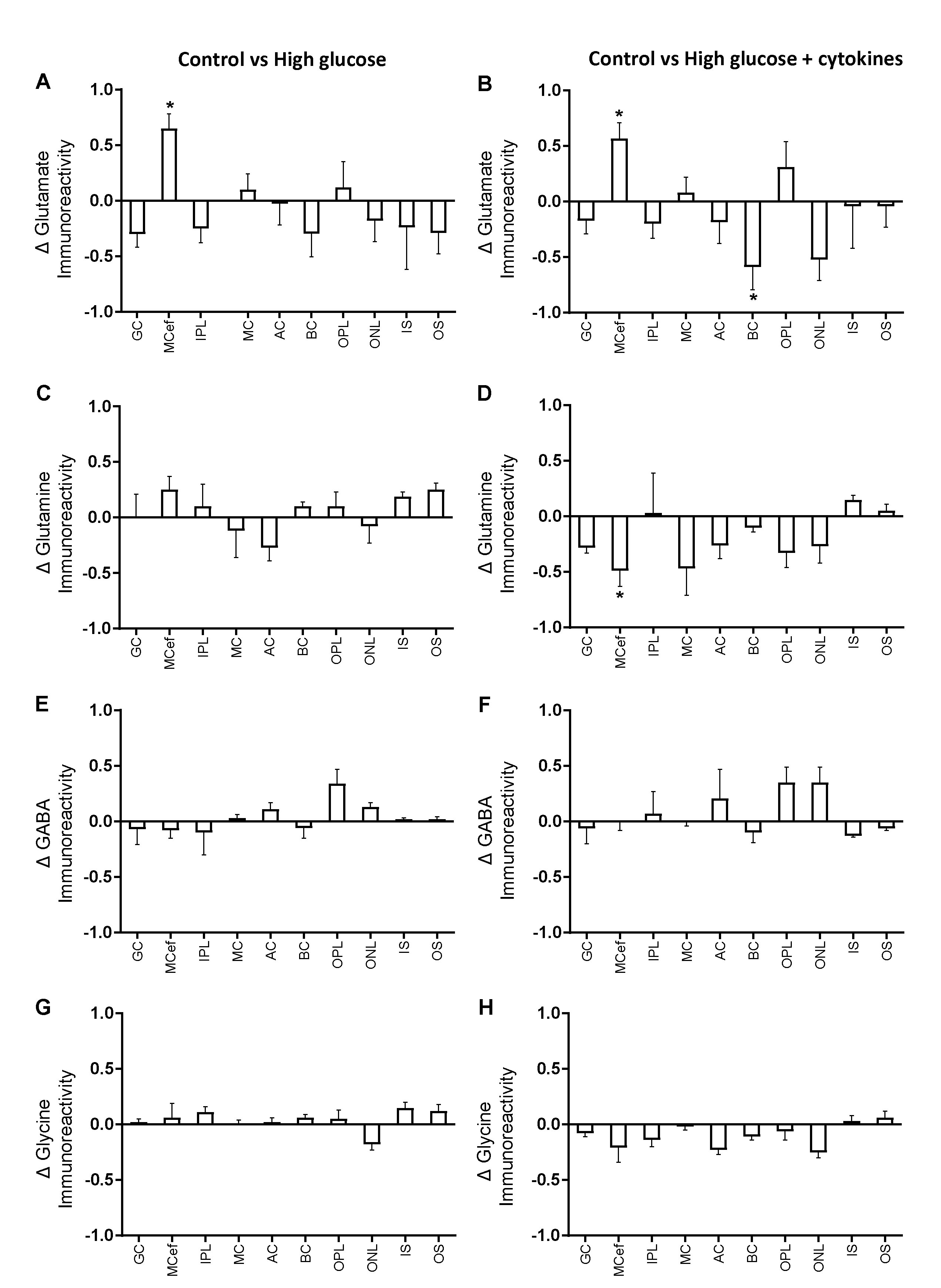 the control retinas. Each value represents the mean difference in immunoreactivity relative to the control condition and is