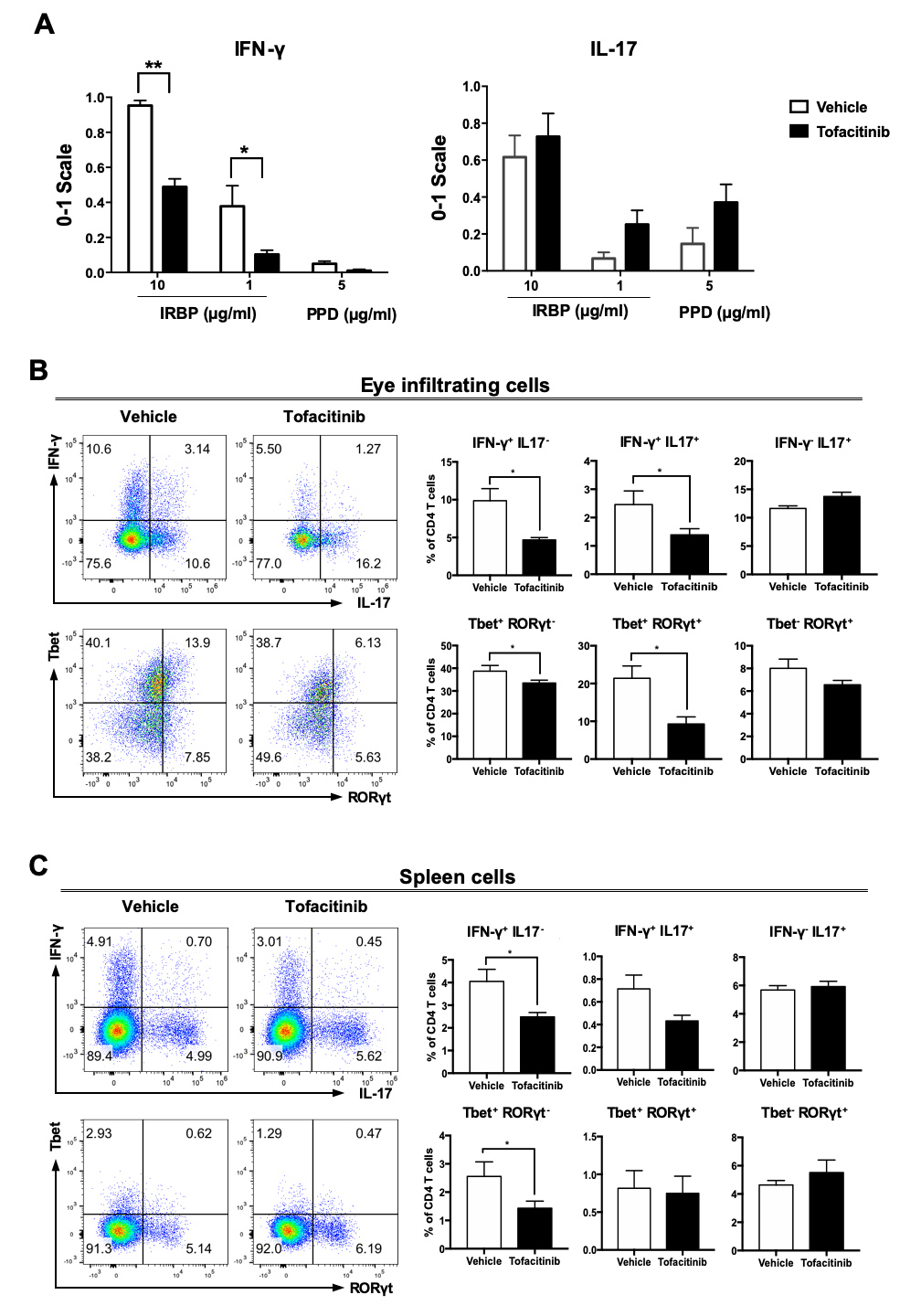 protein (IRBP) and treated with tofacitinib, or vehicle, were collected on day 14 post-immunization and cultured with IRBP