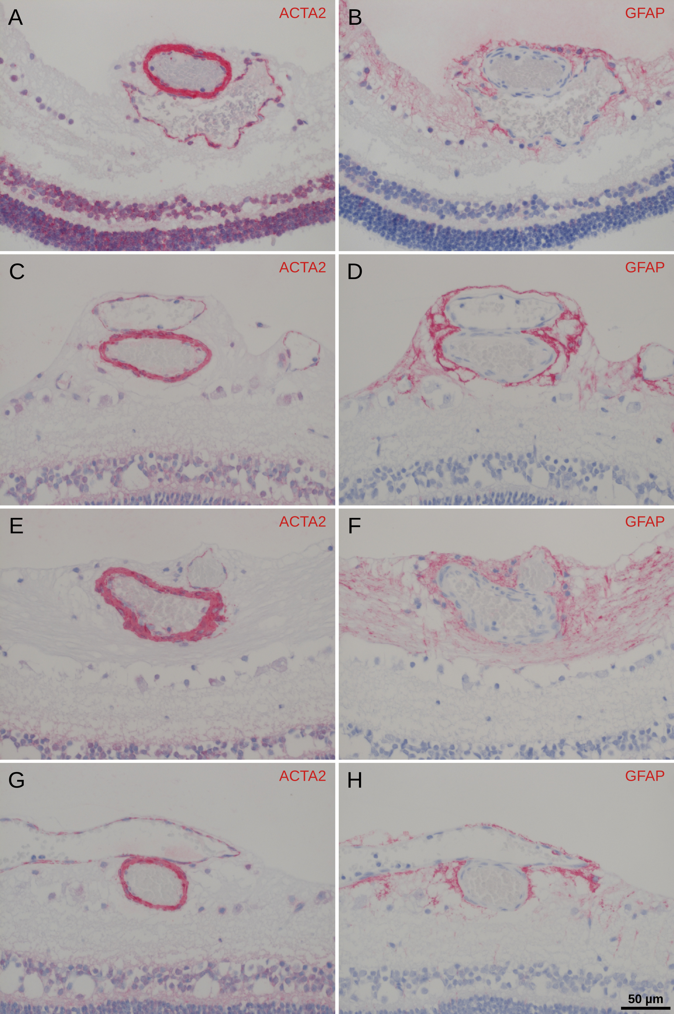 retinal arteriovenous crossing sites using antibodies raised against ACTA2 (