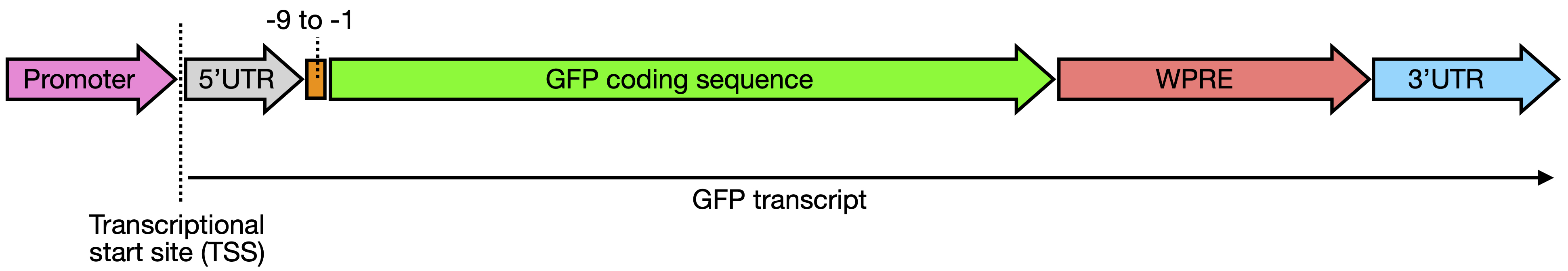 Figure 2. Depiction of the reference GFP transcript. A standard GFP transcript sequence was used to compare the influence of the -9