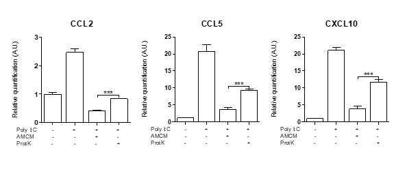 medium (AMCM) statistically significantly decreased expression of CCL2, CCL5, and CXCL10; in contrast, proteinase K-treated