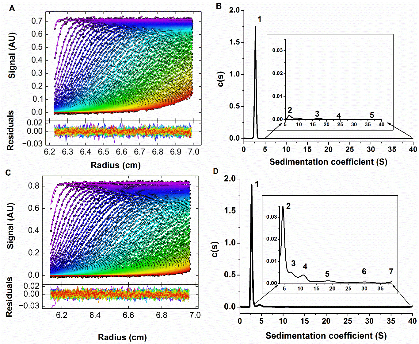 Figure 2. AUC of intermediate species of γD-crystallin aggregates formed under UV-C light. Raw sedimentation velocity centrifugation