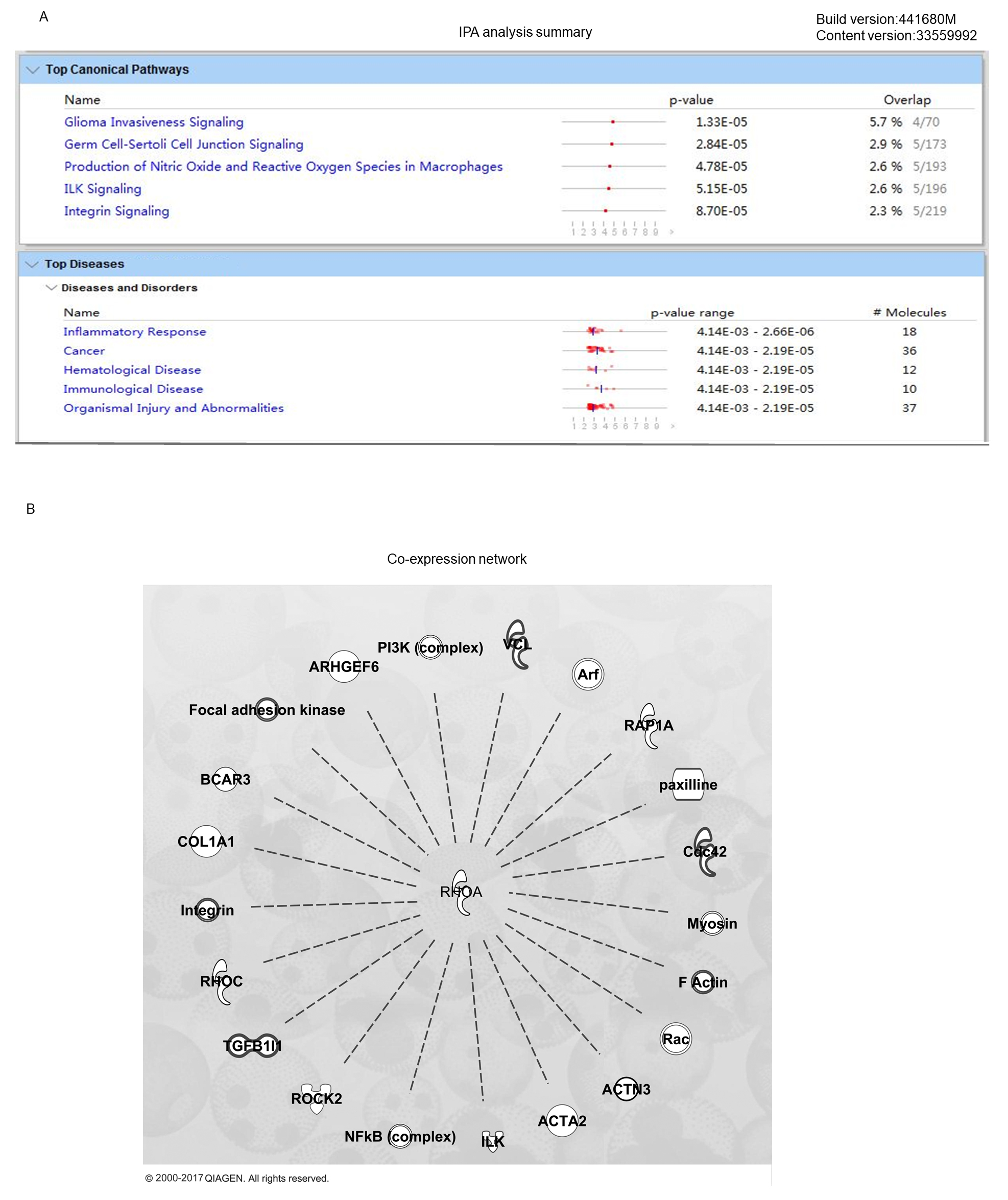 : The top five canonical pathways and disease involved in cellular movement and cellular assembly and organization.