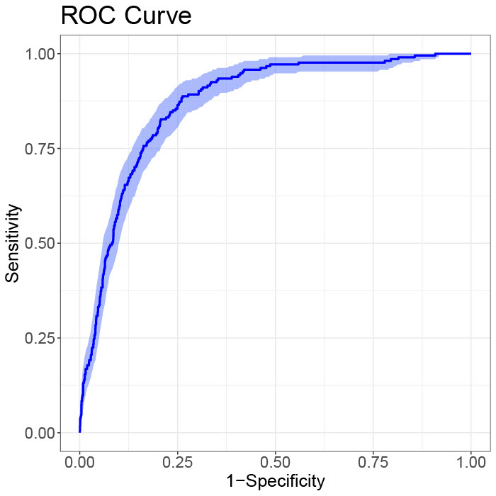 Receiver operating characteristic (ROC) curve with 95% confidence interval (CI) for variables selected based on genetic model).