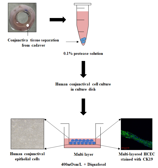 Figure 1. Flow diagram for the production of human conjunctival epithelial cells from cadavers. Conjunctival specimens from cadavers
