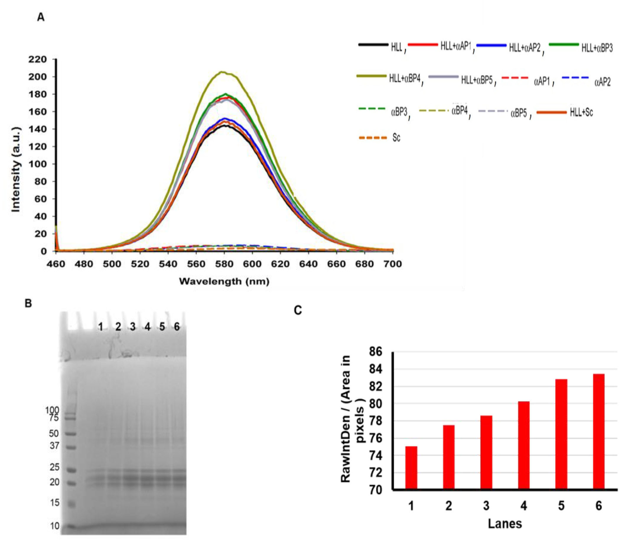 Figure 7. Aggregation of lens proteins on incubation αAP1 and αBP4 peptides with WS-HLL. The water soluble (WS) protein (250 µg) was