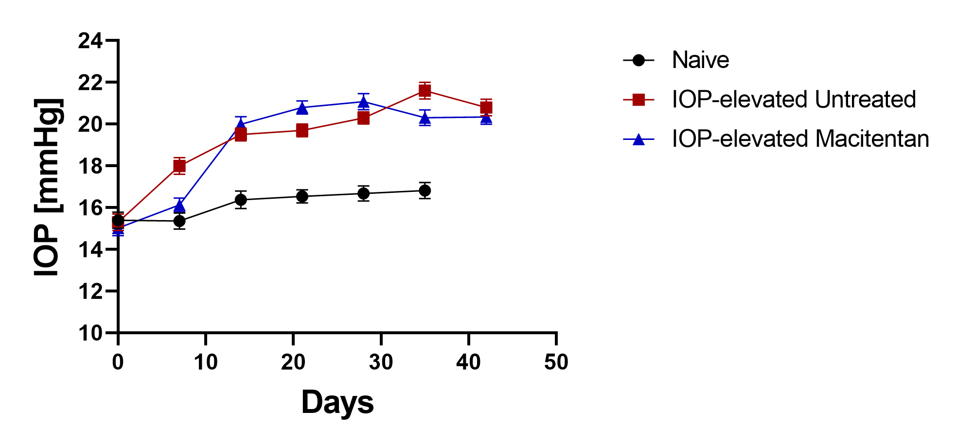 Figure 1. IOP profiles of Brown Norway rats subjected to 4 weeks of IOP elevation and either untreated or treated with macitentan. Plots