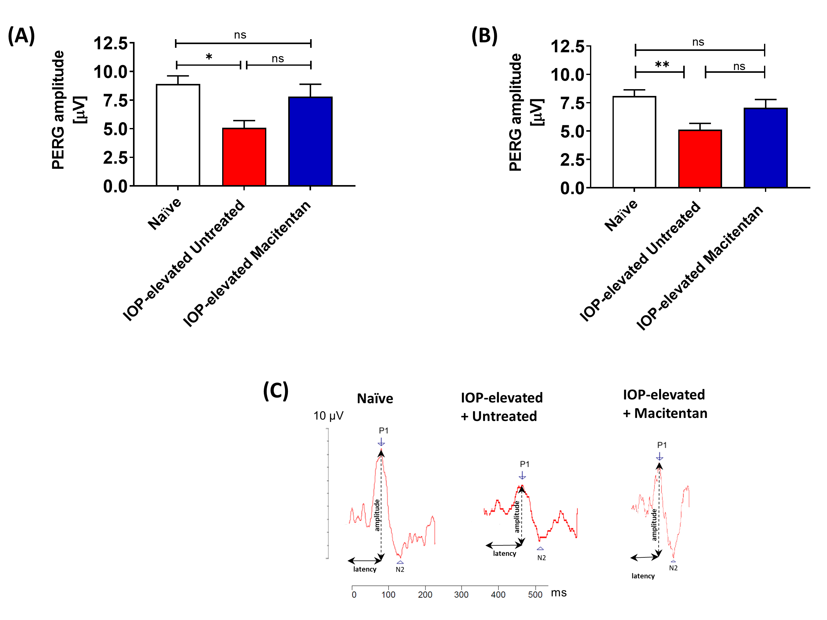 Pattern electroretinography (ERG) measurements in naive, IOP-elevated untreated, and IOP-elevated macitentan-treated retired
