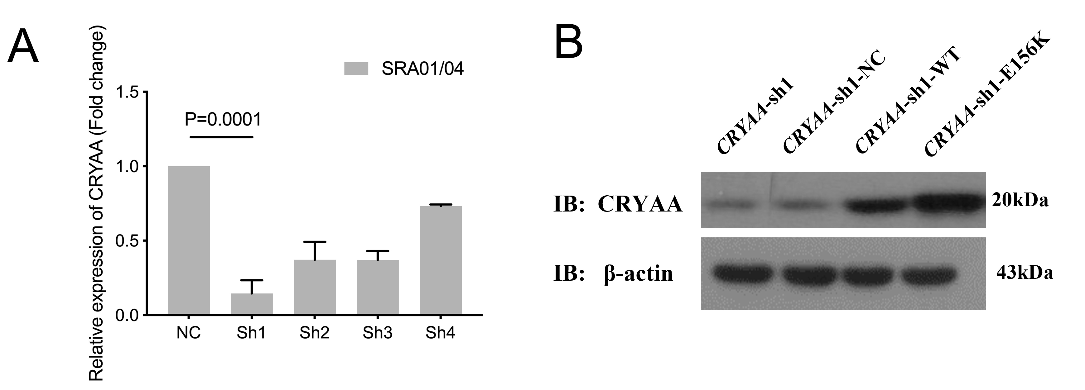 in CRYAA-sh1 transduced with wild type CRYAA plasmid and CRYAA mutant E156K plasmid.