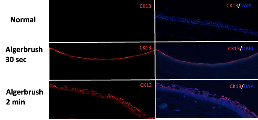 even in mild, 30-s corneal injury (Algerbrush 30 s). The density of K13 has increased after increasing the duration of injury