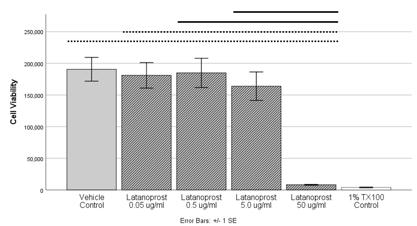 Figure 2. HMGECs were differentiated for 48 h before exposure to latanoprost for 3 h. At 50 µg/ml, latanoprost was lethal to the HMGECs.