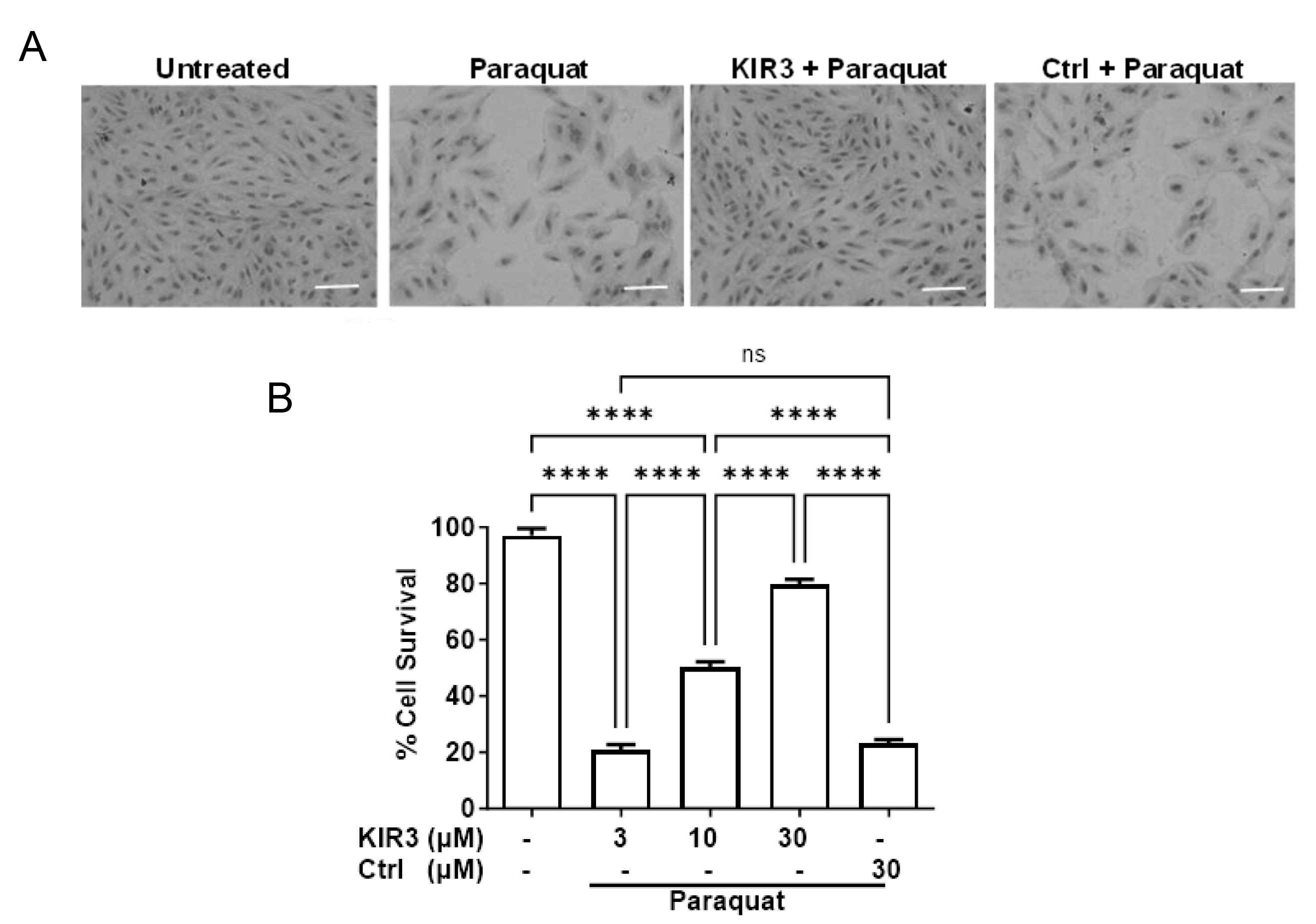 were pre-treated with R9-SOCS3-KIR or its control peptide (both at 20 μM) for 1 h and then with paraquat at 300 μM for 48