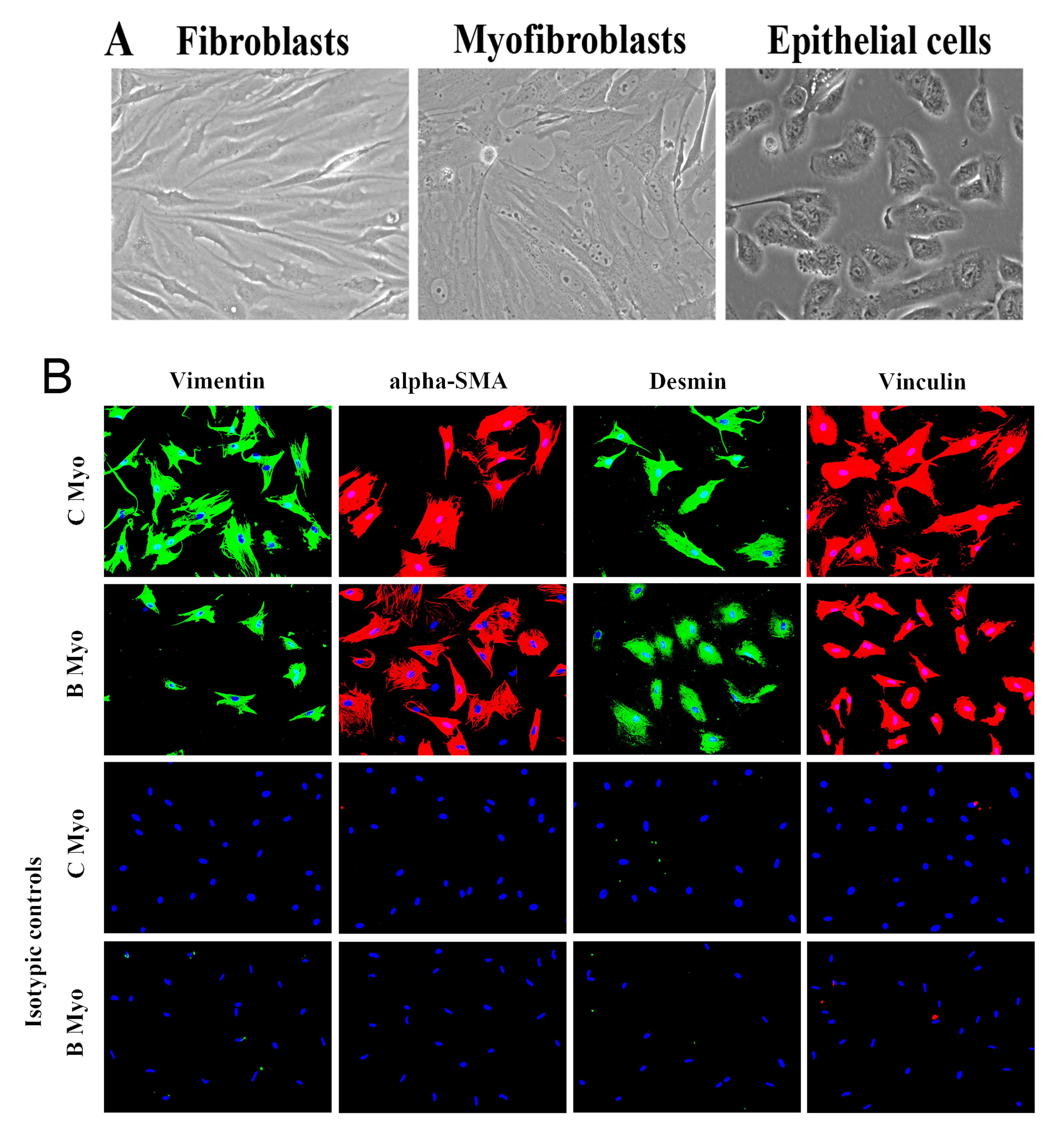 vinculin. Both cornea- and bone marrow-derived cells expressed vimentin, alpha-SMA, desmin, and vinculin, indicating they
