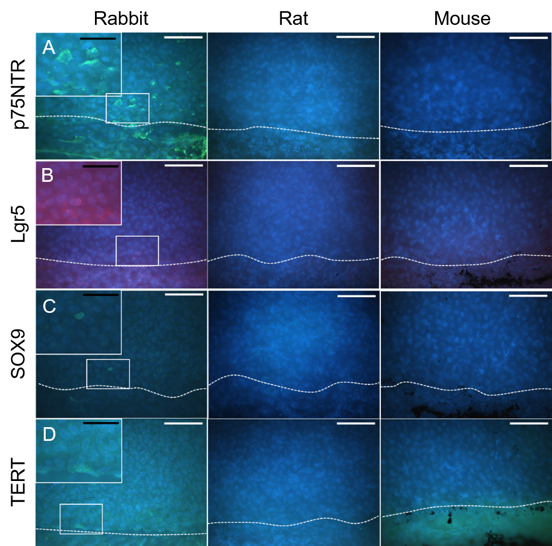 Figure 4. Fluorescent staining for the p75 neurotrophin receptor, leucine-rich repeat-containing G protein-coupled receptor 5, SRY-box