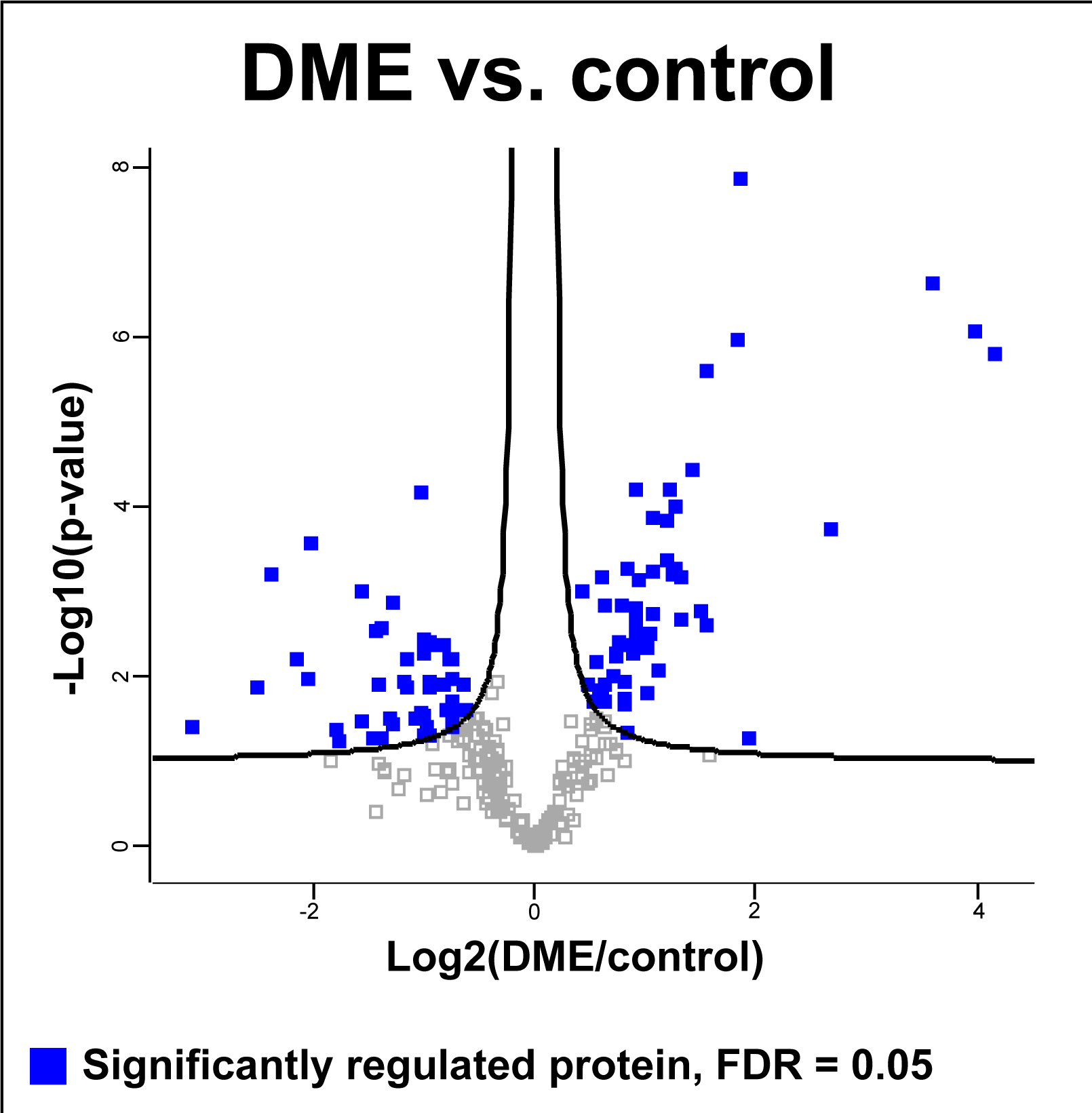 regulated proteins are localized above the full curves. A total of 101 proteins were significantly regulated in the DME group