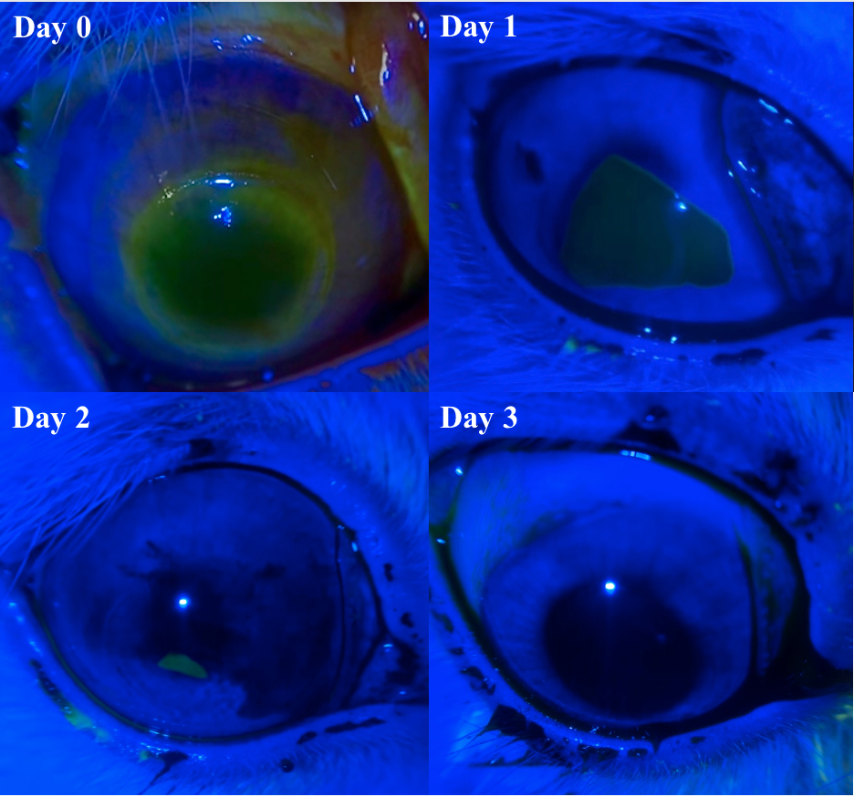 Anterior segment photographs of one of the rabbits in Group 1. The epithelial defect was completely closed on the 3