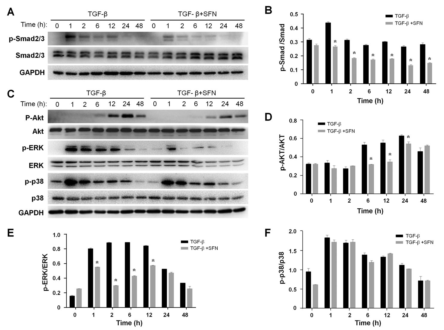 cells were incubated with or without SFN (10 µM) for an additional 24 h. Then, TGF-β (5 ng/ml) was added at indicated time