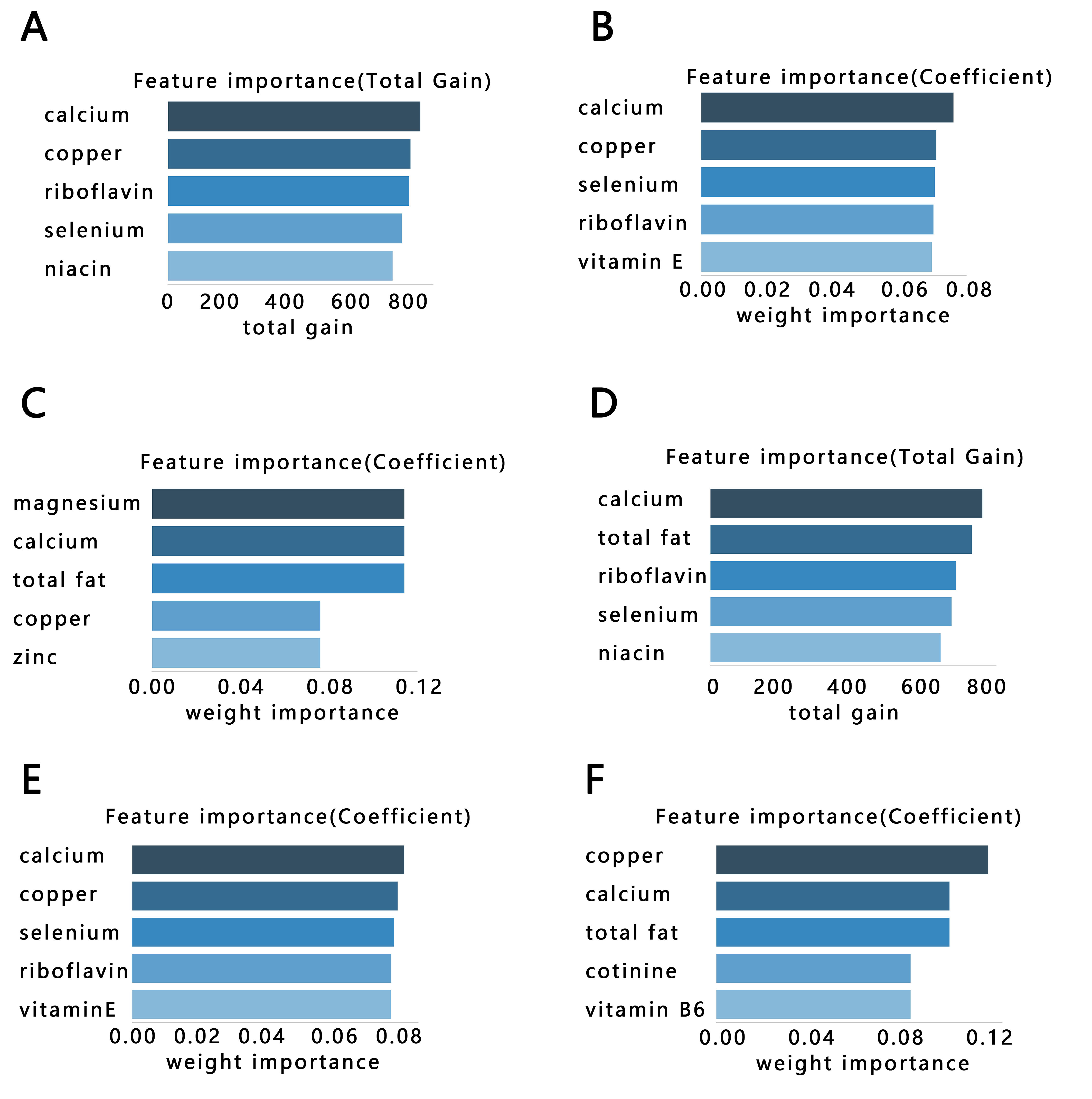 Figure 2. Screening of important OBS components related to myopia and its severity. The importance ranking bar chart of the top five