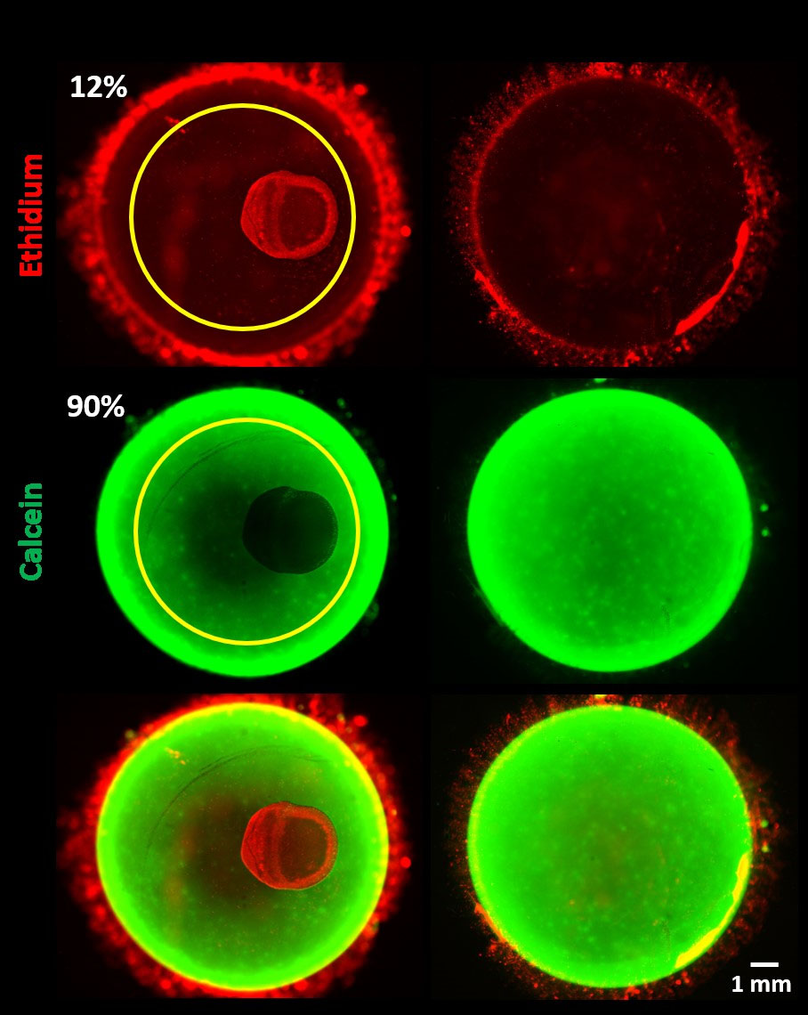 indicates the viable and dead areas in this ROI. Notably, at this low magnification (required to image the entire lens), ethidium