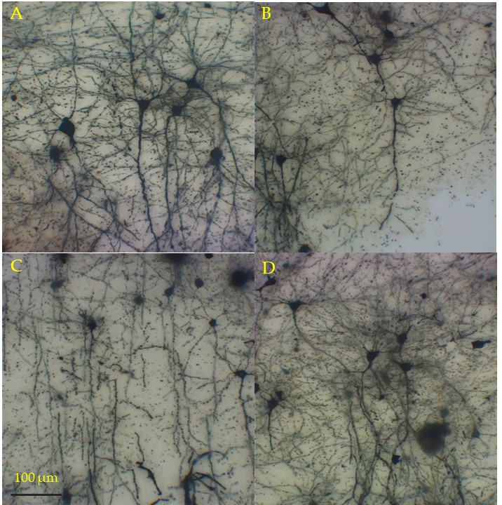 Golgi-stained V1-L5PNs. Golgi-stained V1-L5PNs obtained from four groups: control (