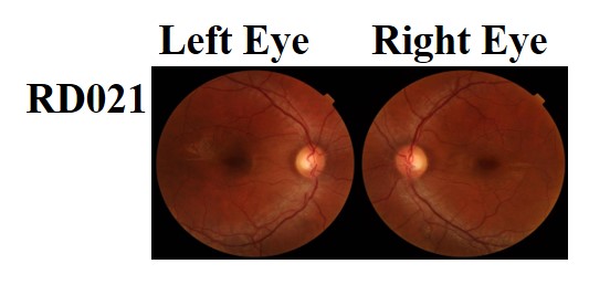 Appendix 3. Fundus photographs of left and right eye of an affected member of family RD021 (IV-I).