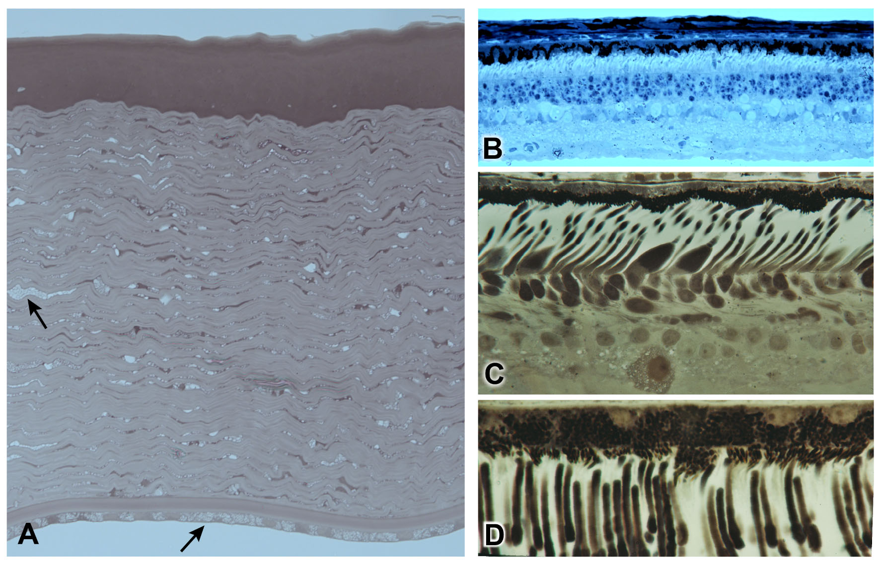 B: A mid-peripheral retinal section from