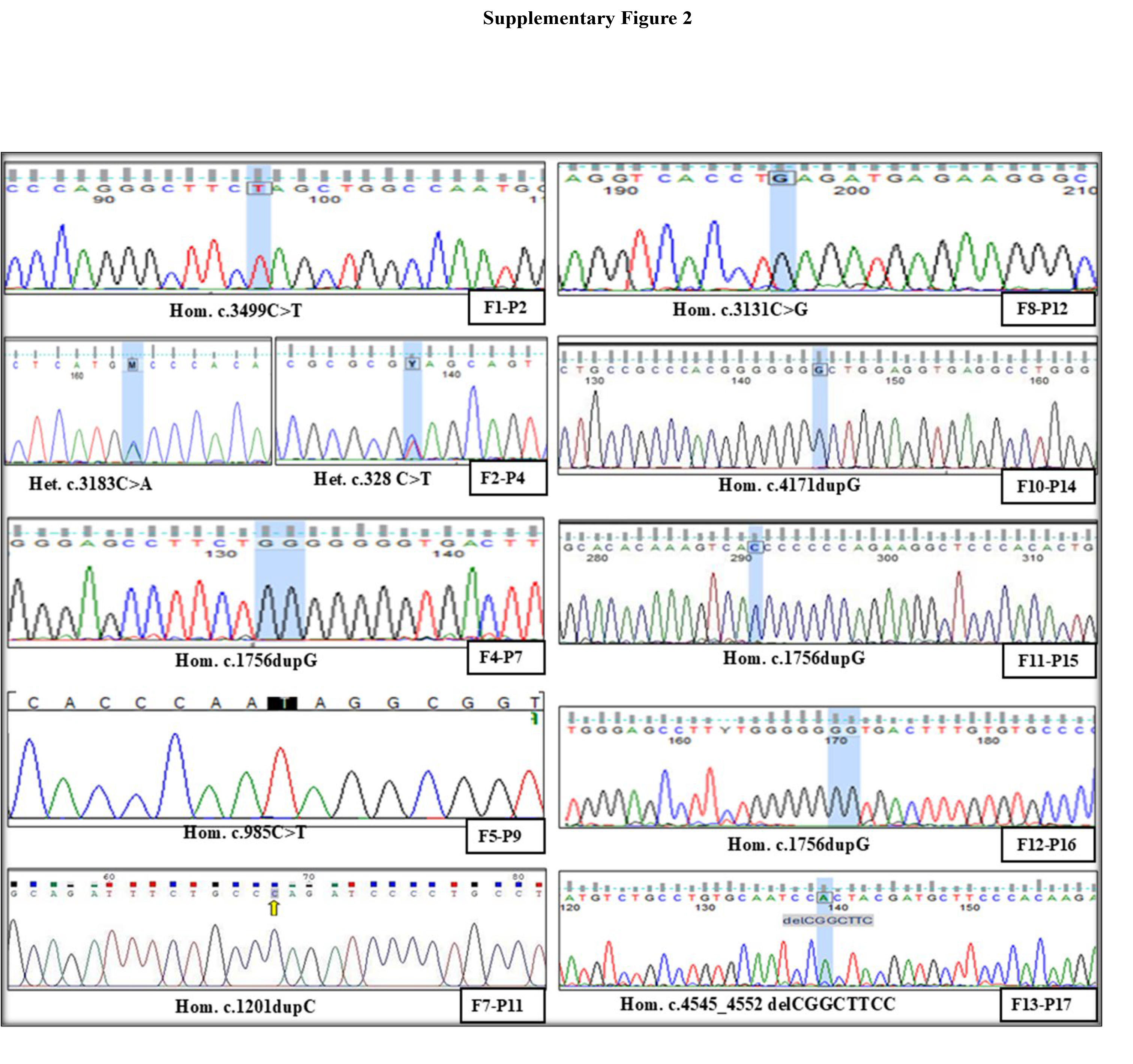 To access the data, click or select the words “Appendix 3.” Sanger sequencing chromatogram of LTBP2 variants validated among affected cases (P1-P18) of families (F1-F14) with altered nucleotide region highlighted.