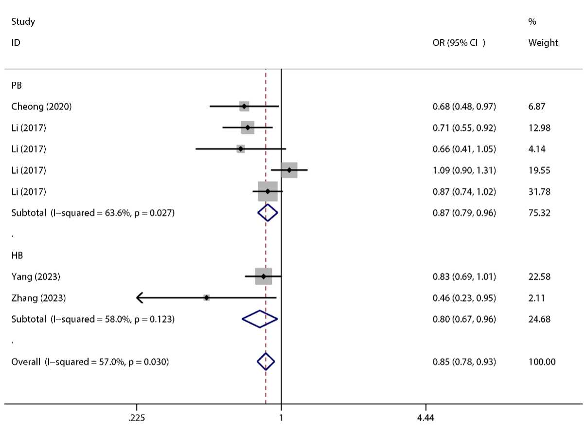 Forest plots corresponding to high myopia risk between the