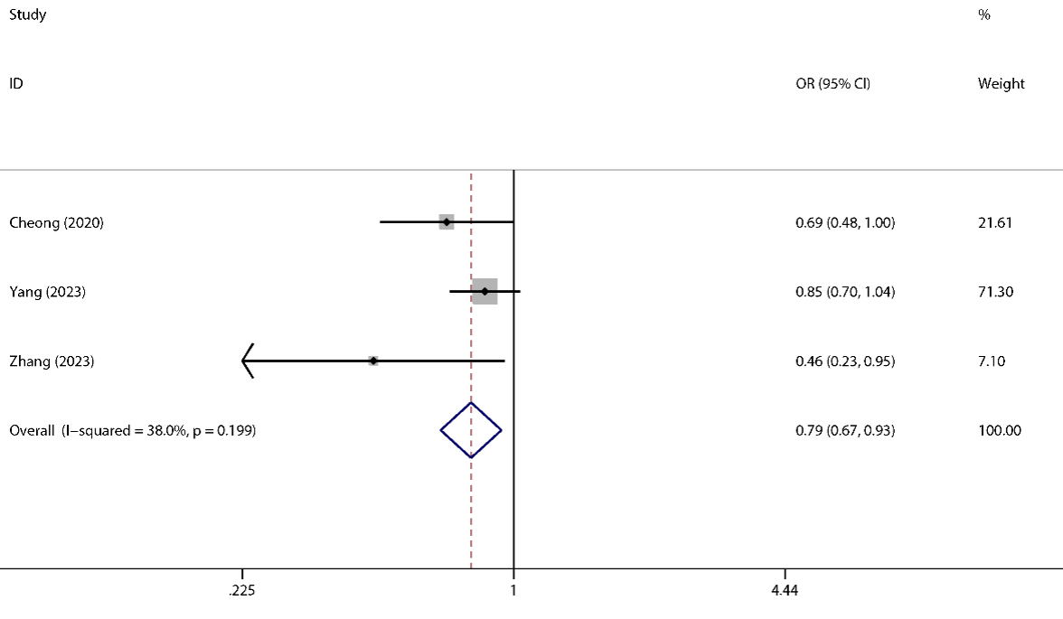 Forest plots corresponding to high myopia risk between the