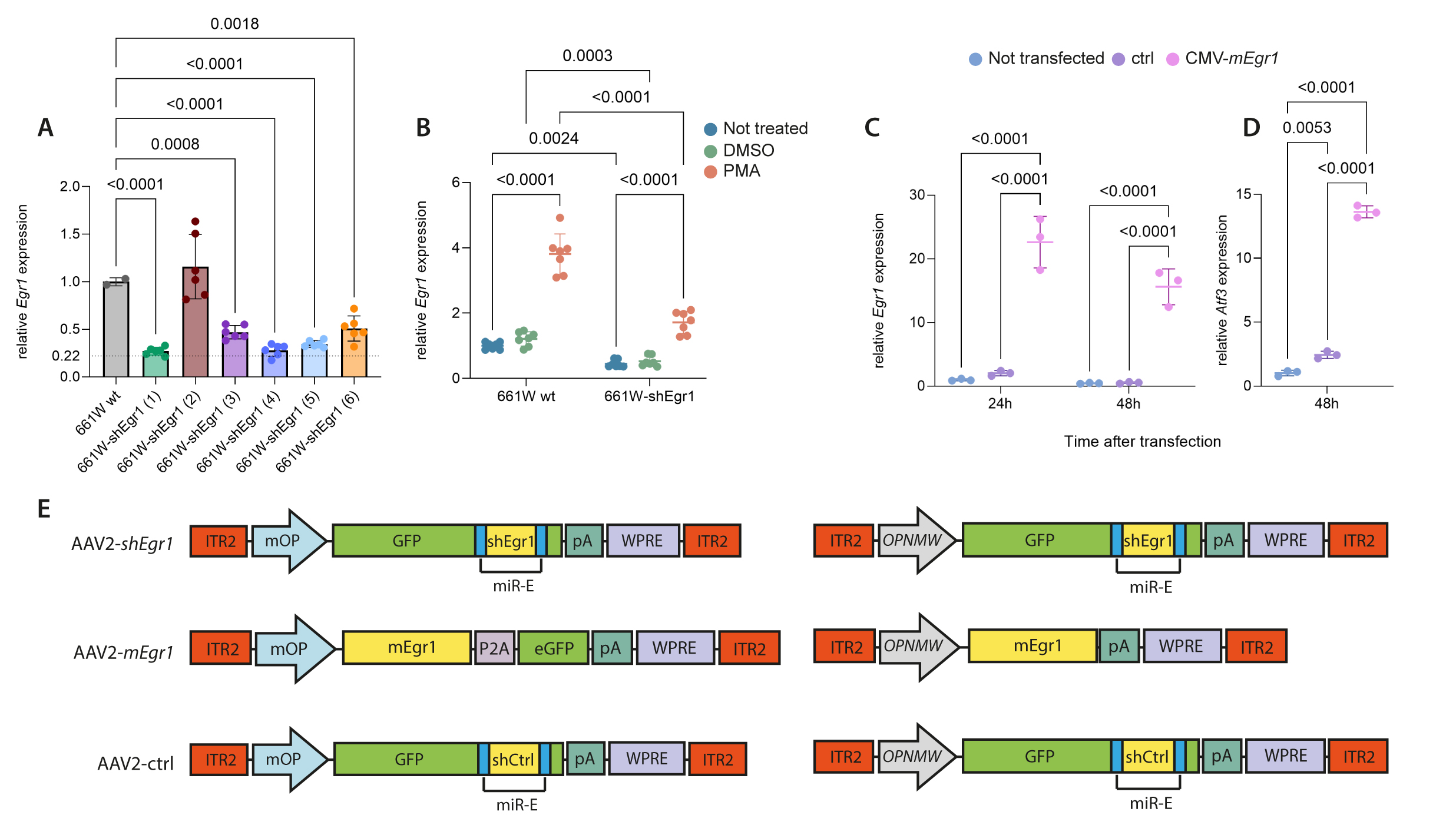 Egr1 overexpression plasmid AAV2::CMV-mEgr1-P2A-eGFP-pA-WPRE (CMV-mEgr1) in 661W cells.