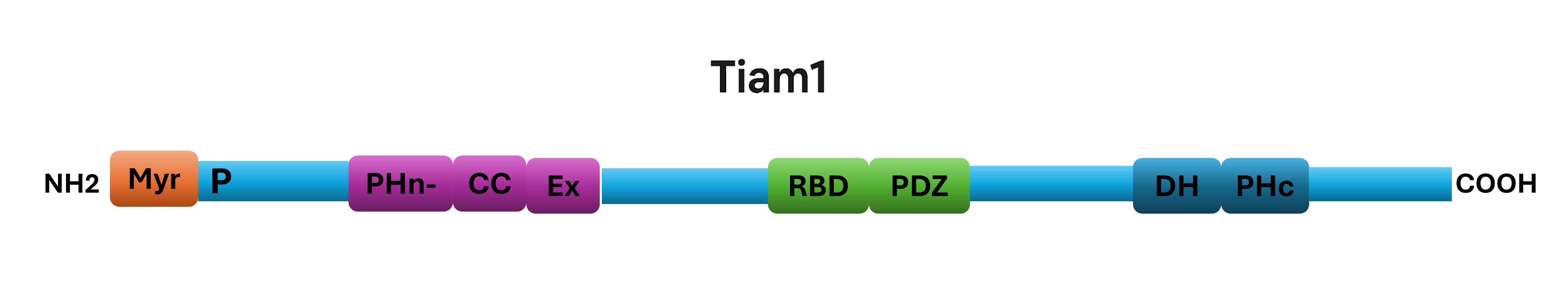 Figure 1. Tiam1 protein domain structure. This figure shows a schematic representation of the Tiam1 protein domains, including the myristylation