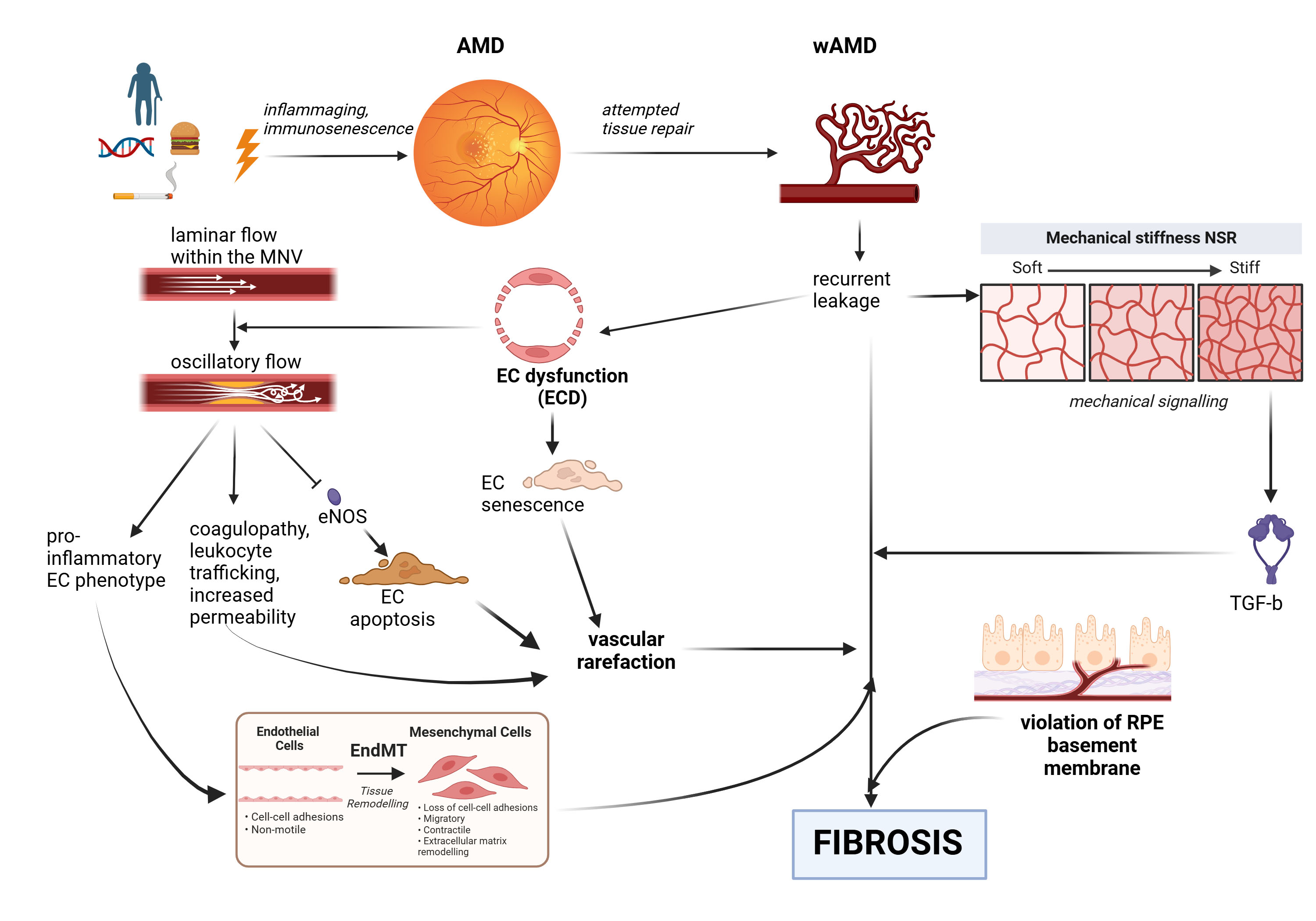 Figure 1. Endothelial cell-mediated pathway leading to fibrosis in neovascular age-related macular degeneration (nAMD). A combination